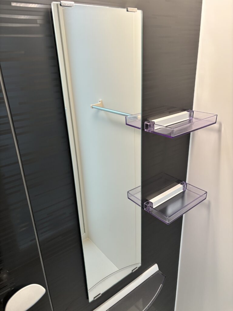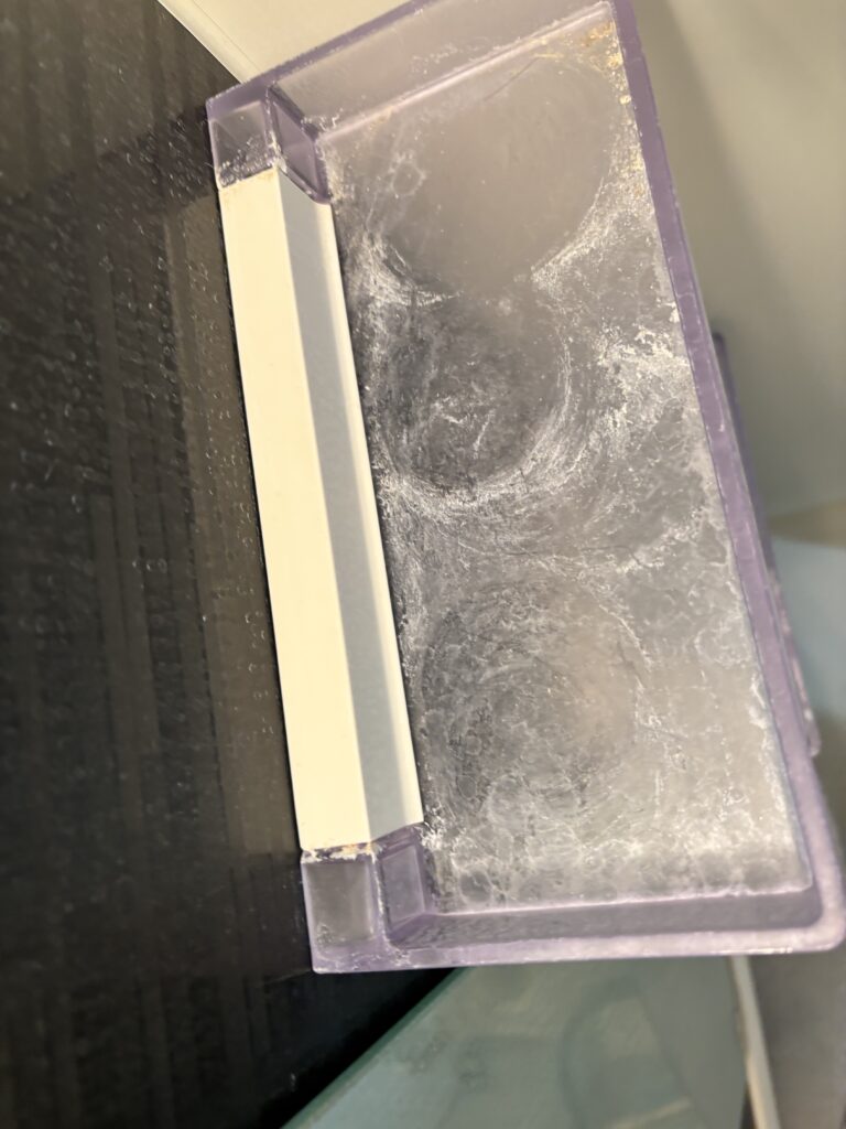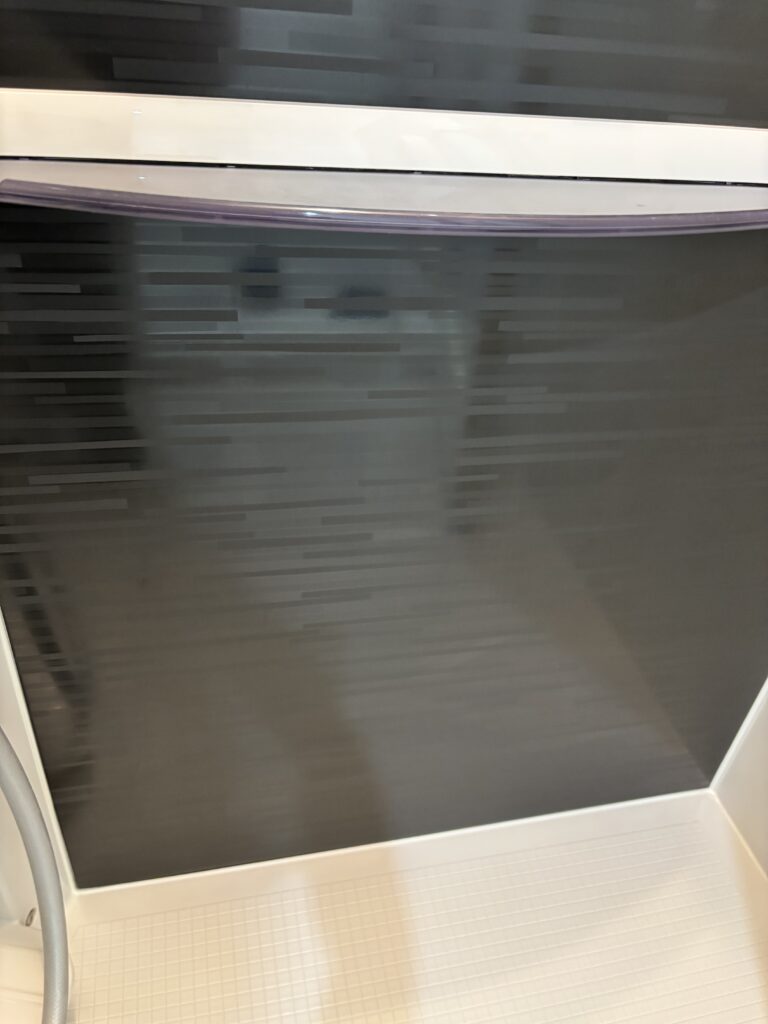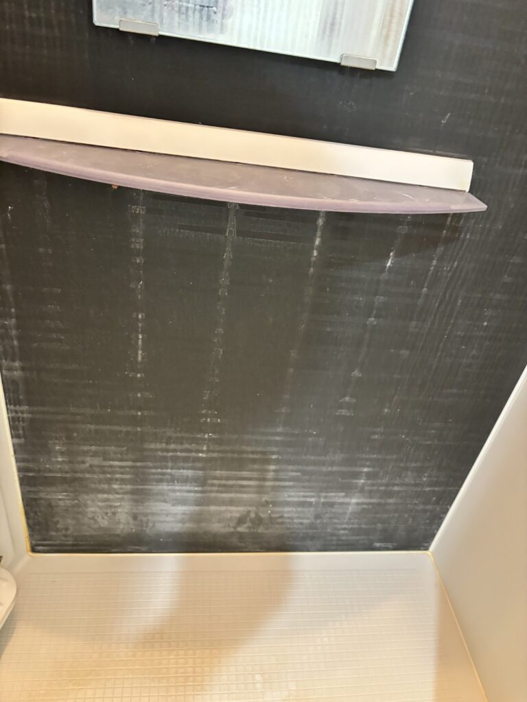 そして浴室の色壁やトレイはこういった白い汚れがびっしりついてしまいますと、日常のお掃除で綺麗にすることは難しいですよね。